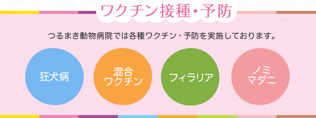 狂犬病、混合ワクチン、フィラリア予防、ノミ・マダニ予防